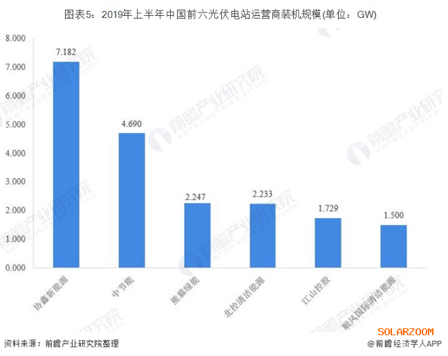 隨著531光伏新政的實施,光伏行業(yè)相關企業(yè),尤其是光伏電站建設及運營企業(yè)發(fā)展受阻,部分民企開始通過出售資產方式以求“自救”,國內電站資產持有方亦開始逐漸轉移向資金實力雄厚的國企。截至2019年上半年,協鑫新能源以7.182GW的裝機規(guī)模排名第一;中節(jié)能和熊貓綠能緊隨其后,裝機規(guī)模分別為4.69GW和2.247GW。